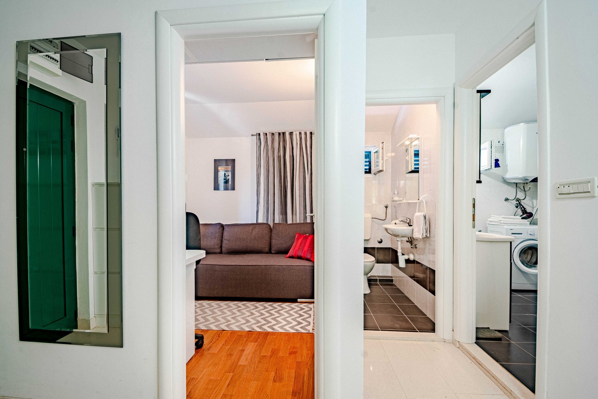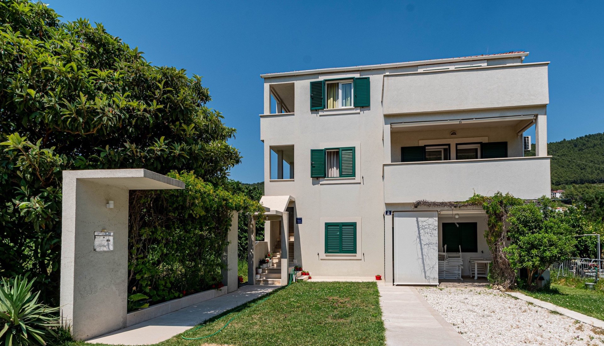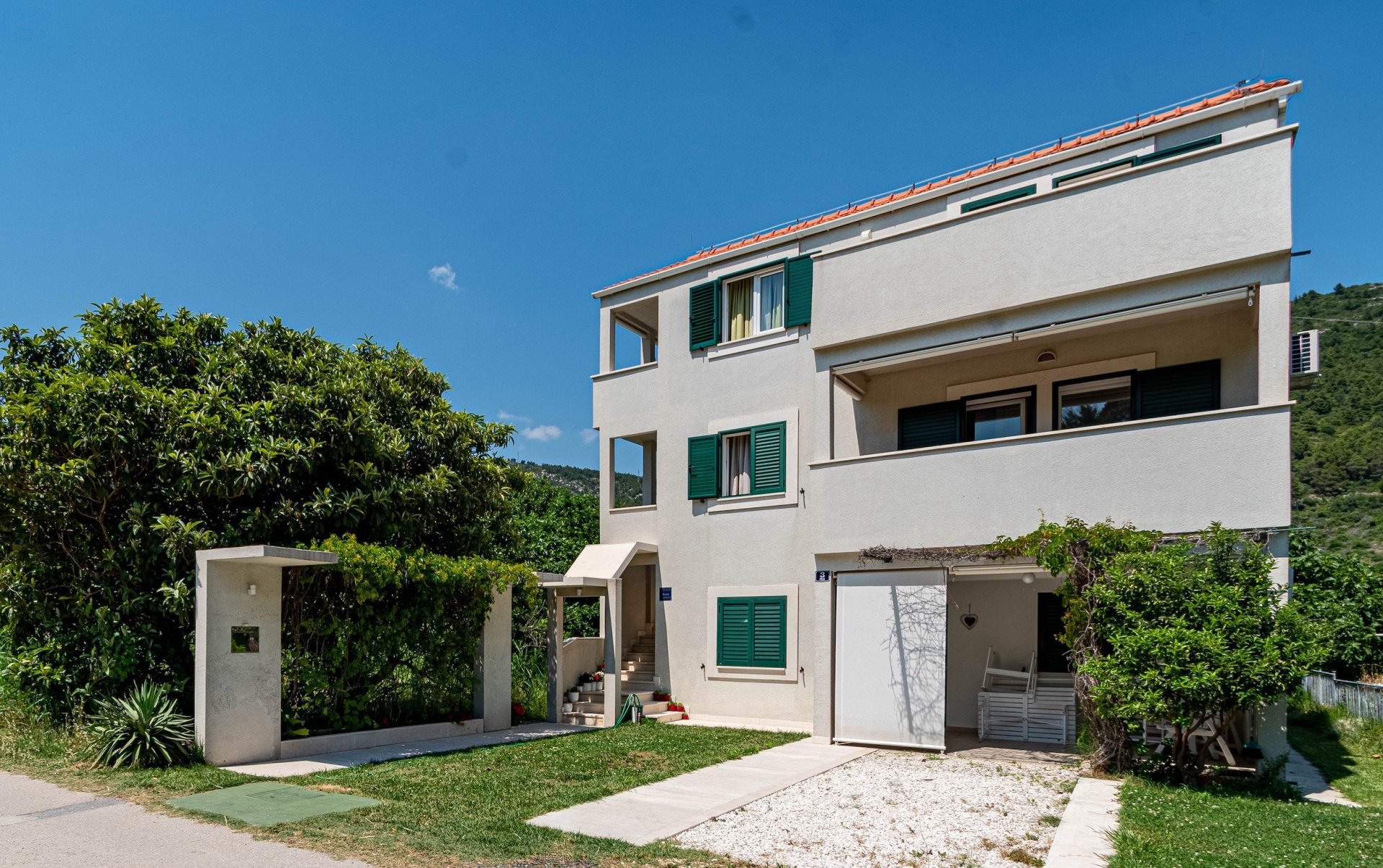 Just 50 metres from the beach, its a stunner of a holiday location. The modern kitchen is fully equipped so that you can enjoy making your own food, or simply enjoy local wine through the long summer evenings on the large terrace. Apartment occupies the whole top level of the house and it spreads over 100m2. It has a spacious living room, 2 bedrooms, bathroom and an additional toilet. It accommodates up to 5 people. The bay of Zuljana is nestled between gentle, green hills with pine woods and rosemary bushes reaching straight to the crystal clear sea. The deep valley is covered with vineyards and olive groves, as most of the locals are traditionally wine and olive oil makers. Zuljana has a very old history. Some of the churches are dated back to the 6th century. New archaeological findings place the early settlements as far back as ancient Greece. Zuljana has a perfect mediterranean climate with warm summer days and cooler nights.