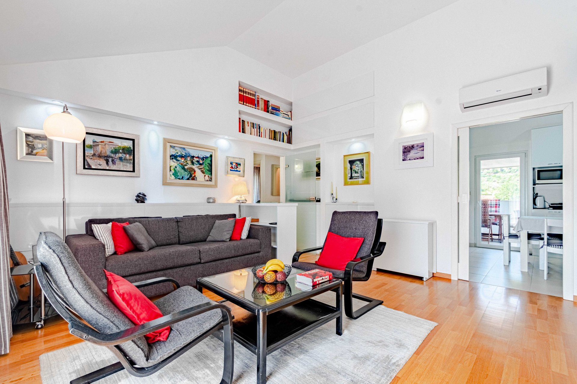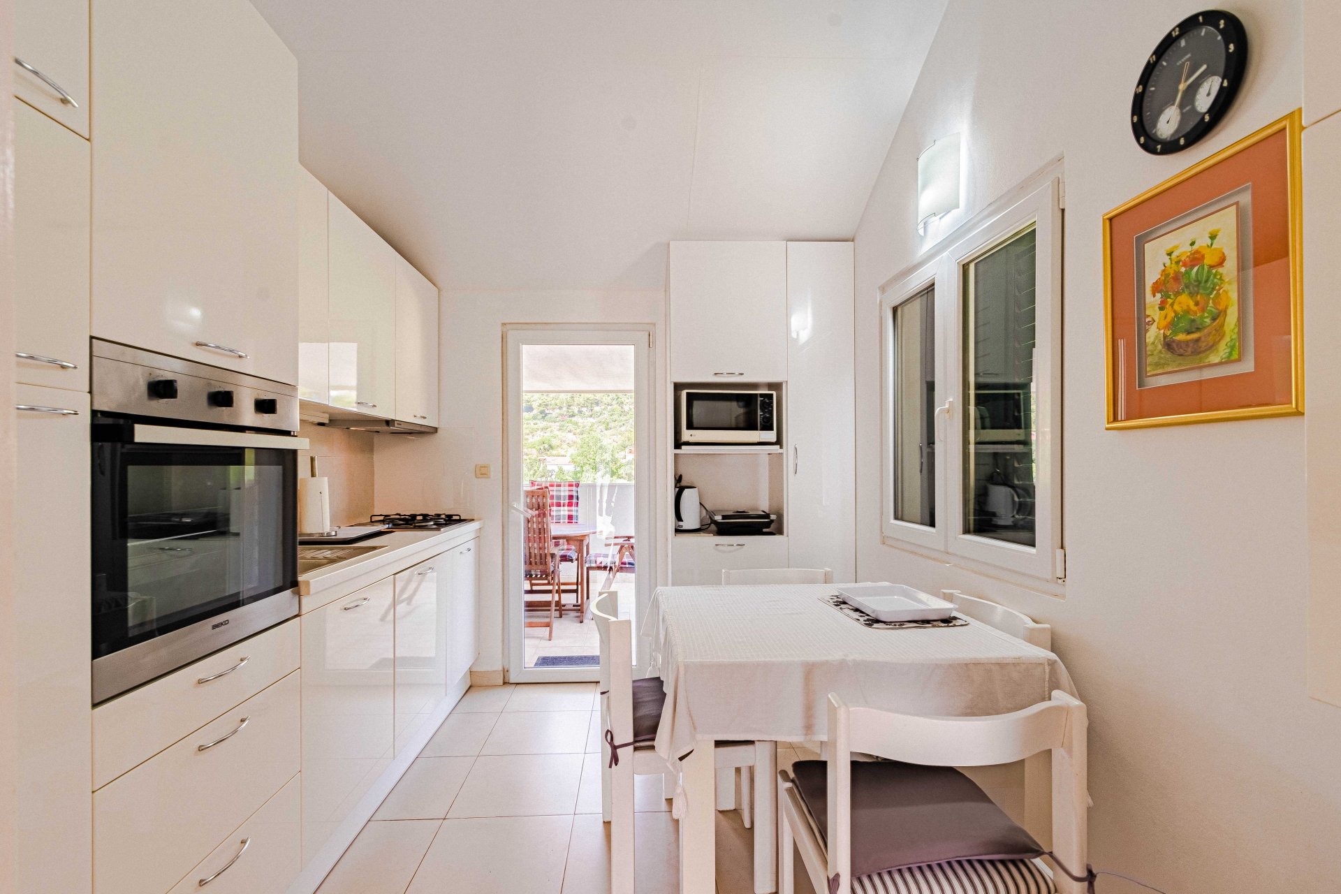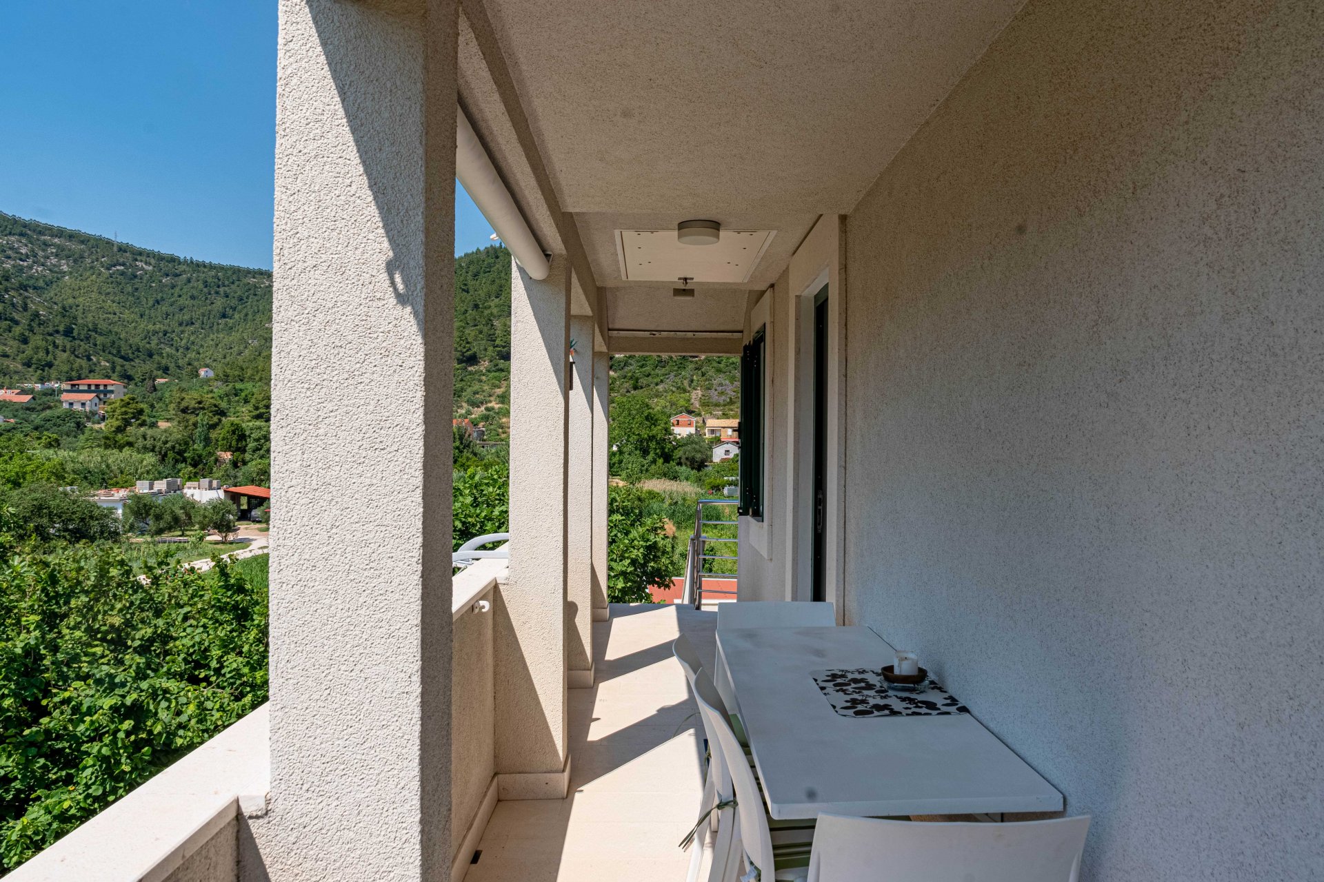 This luxurious, modern and spacious apartment has 360-degree view of the beautiful natural setting of Zuljana bay. It is perfect for families, as it opens out onto a BBQ area/terrace from a large living space with kitchen and dining area. Living room also opens to another smaller terrace turned to the south/west.