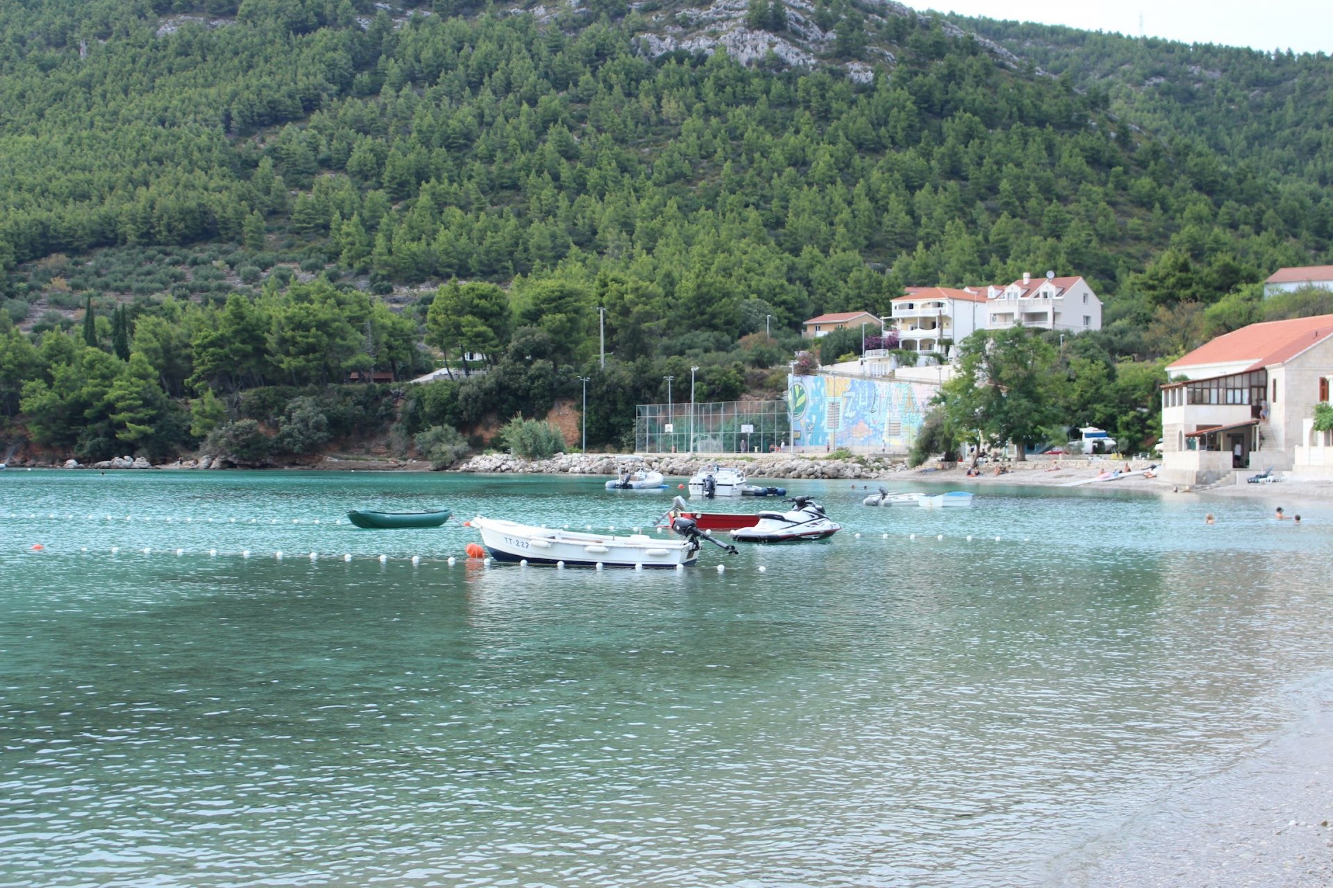 Apartment has a double bedroom and a living room which can also be turned into another bedroom, since the sofa can be turned into a large double bed. Fully equipped kitchen, a bathroom with shower and a furnished terrace are also provided. Apartment is air-conditioned and features free wi-fi, flat screen TV, washing machine, BBQ and free private parking. A beautiful beach, as well as restaurant, cafe and a grocery store can all be found in 150 meters distance. In the neighbourhood guest can also find a diving center, rent a jet ski and water park.