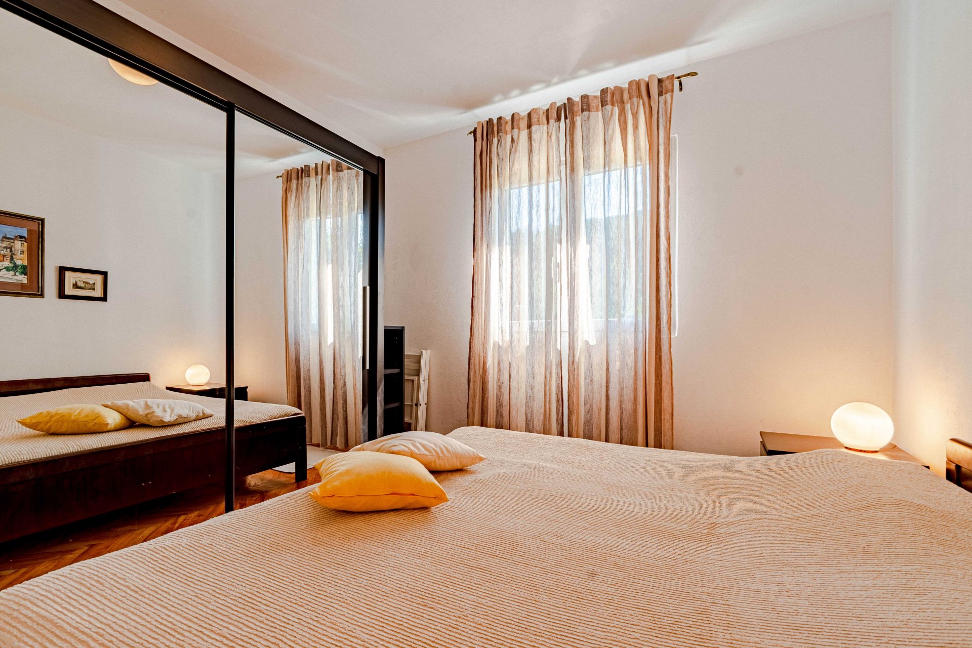 Master bedroom Stylish living room with a big sofa turning into comfortable bed for two Modern kitchen fully equipped for longer stay Luxurious bathroom It has a gorgeous west side loggia for the perfect breakfast, lunch and dinner..or just reading, sunbathing and drinking wine. The bay of Zuljana is nestled between gentle, green hills with pine woods and rosemary bushes reaching straight to the crystal clear sea. The deep valley is covered with vineyards and olive groves, as most of the locals are traditionally wine and olive oil makers. Zuljana has a very old history. Some of the churches are dated back to the 6th century. New archaeological findings place the early settlements as far back as ancient Greece. Zuljana has a perfect mediterranean climate with warm summer days and cooler nights.